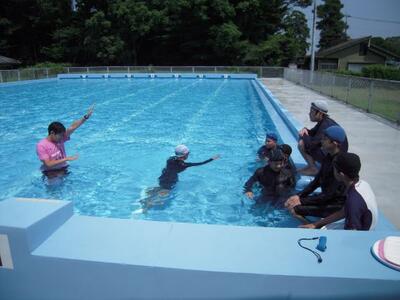 泳力は一人一人違っているので、泳力に自信があるグループ、泳力に自信がないグループ、2つのグループに分けて指導が始まりました。