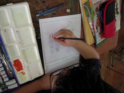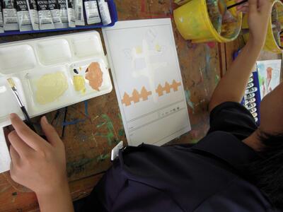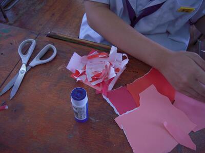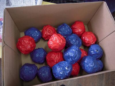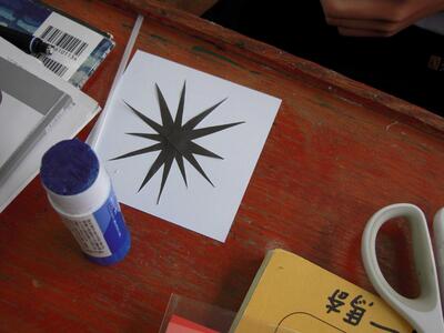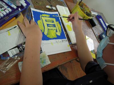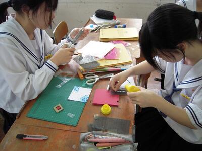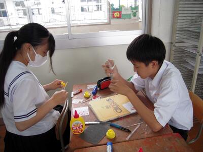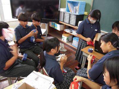 体育大会では、各学年の生徒の皆さんが心を一つしてに競技する「団技」があります。1年生の教室では、その団技で使う道具を製作しています。