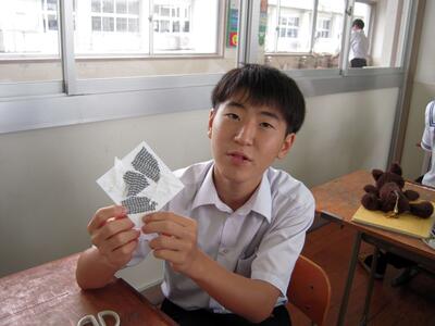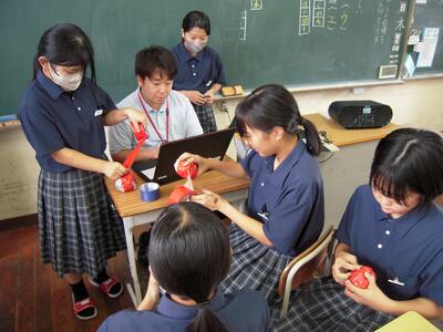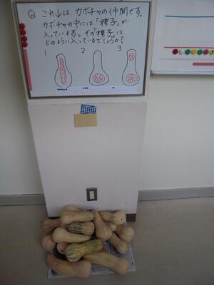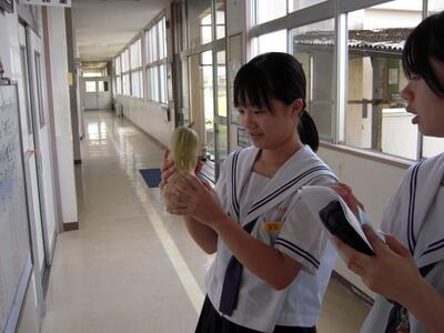 その場にいた生徒の皆さんは、「メロンの匂いがする。」「キュウリの匂いがする。」など、何かに例えて表現しています。人は、未知のものに遭遇したとき、自らの経験をもとに辿ろう(表現しよう)とします。