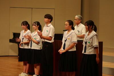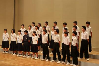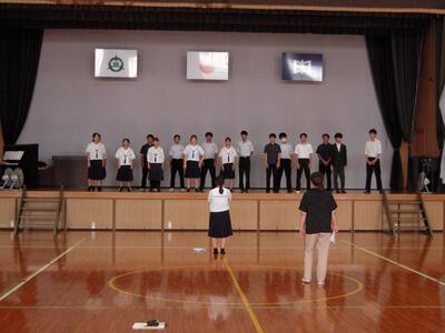 「ふるさと」を全員で合唱し、喉をウォーミングアップしました。