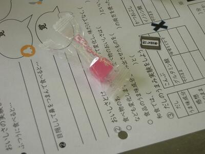 もう一つを、鼻をつまんで、目を閉じて食べてみます。
