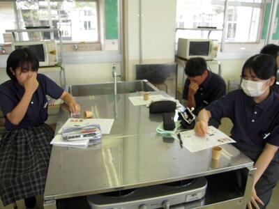 1年生家庭科の様子です。学習課題は「おいしさの実験」です。