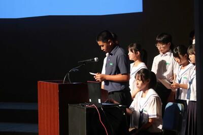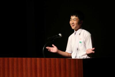 実行委員の皆さんによる司会から始まり、英語発表(暗唱の部、弁論の部)がありました。