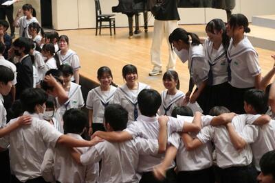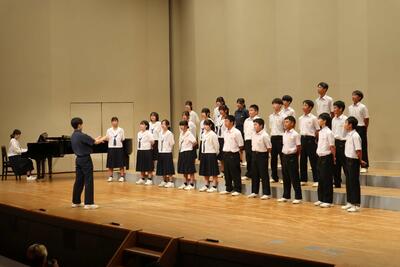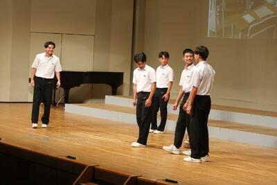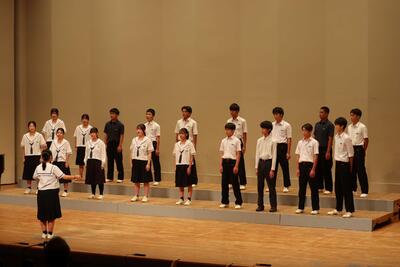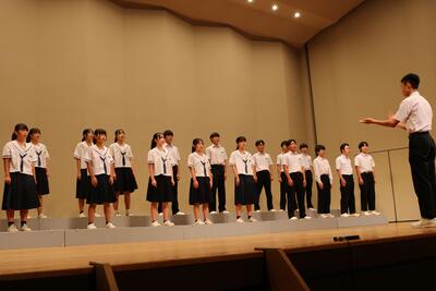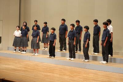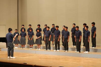 今年度の文化発表会は、サンA川南ホールで開催されます。そのステージで合唱するために、学校のステージで3年生が練習しています。