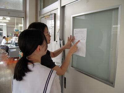 いよいよ、その結果が分かる日になりました。集まった生徒の皆さんは、興味津々です。