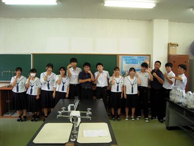 今日の授業の様子です。理科室から声が聞こえます。覗いてみると・・・。1年生が何やら実験をしています。