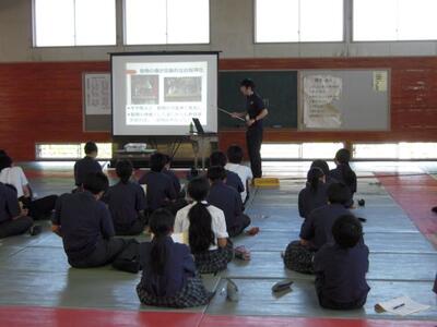 1年生の総合的な学習の時間では、「川南を知る」そして、「川南の魅力を学ぶ」ことを目的として活動しています。その活動の一つとして、「地域を知る」から始まります。今日は、德田様を講師としてお迎えし、主に「川南の歴史」を学習しました。