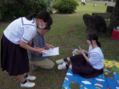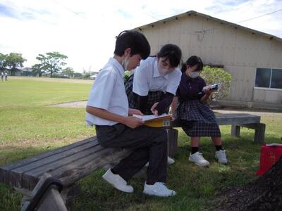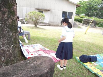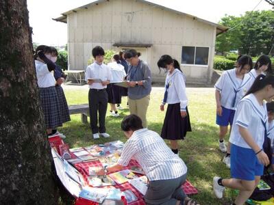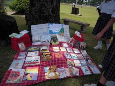 学校敷地内には、数多くのクスノキがあります。その中の1本は「国光の樹」として学校の木になっています。その木陰に「あおぞら図書館」が開館しました。爽やかな風を感じながら、好きな本をもって木陰にあるベンチに座って、ひたすら読む、だけですが、とても素敵な時間です。