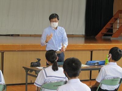 6校時は全学年に川南町役場産業推進課の長友竜二様より「口蹄疫発生時における川南町の対応と復興・対策」と題した講話をしていただきました。