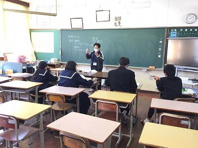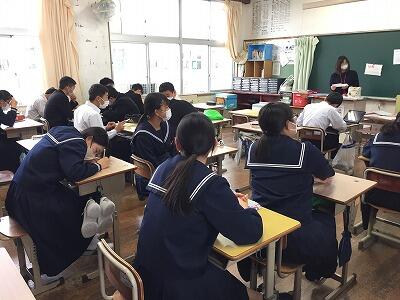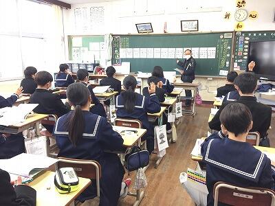 本日は1、2年生は短縮の6時間授業(清掃なし)で、帰りの会終了15:00です。リフレッシュデーのため部活動はありません。3年生は県立高校一般入試に12名が挑みます。入試のない生徒は4校時終了後下校(給食なし)となります。また、4時間目に先輩の声を聞く会があります。中3の3名は通山小学校に行って中学校生活の様子を紹介します。