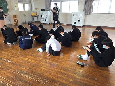 3年生の県立高校入試前日指導です。全体的な注意点を聞いています。↓