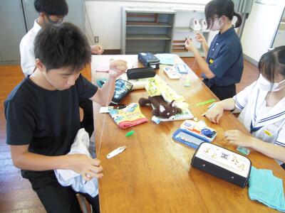 被服室から先生が説明する声が聞こえてきます。何をしているのかと思い、のぞいてみました。すると・・・