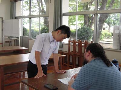 英語暗唱弁論大会練習最終日を迎えました。夏休みから始まった練習もいよいよフィナーレを迎えました。最後の練習も緊張感が高まります。発音、イントネーションなど、シャーマン先生から直接指導を受けています。最後の最後まで、諦めることなく、駆け抜ける青春のいちページです。