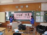3月6日、送別集会が行われました。1、2年生の後輩たちは、日頃の感謝の気持ちを込めてお世話になった3年生の先輩たちへのお礼を発表し、3年生は後輩たちへの激励の言葉を届けました。その後、先生方も交えた「3年生クイズ大会」では、先輩たちにまつわるエピソードを楽しく振り返り、笑顔あふれるひとときとなりました。さらに、じゃんけん大会や大縄跳び大会では、クラスやグループの仲間と力を合わせ、盛り上がりながら競い合う姿が見られました。先輩・後輩の絆がより深まり、笑いと感動に包まれた時間となりました。