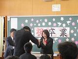 3月13日、都農町更生保護女性部会の皆様より、手作りのコサージュとペン立ての贈呈が行われました。1・2年生も全員、コサージュづくりとペン立てづくりに協力してくれました。ありがとうございました。3年生代表のお礼の言葉も、大変立派でした。
