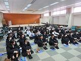 2月26日、1年生を対象に性に関する講話を実施しました。今回は、健康管理センターより助産師の治田早苗様を講師としてお招きし、体育館で行いました。講話では、「パーソナルスペース」や「プライベートゾーン」等について、助産師という専門的な立場から分かりやすくお話しいただきました。心と体の発達、そして命の大切さについて具体的に学ぶことで、生徒たちは自分自身を大切にすること、そして他者を尊重することの意味を改めて考える機会となりました