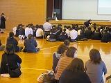 1月26日より、空手道の学習が始まりました。講師には、空手道の師範である岩田PTA会長をお迎えし、各学年5時間の授業を保健体育科において実施します。第1日目の授業では、空手道の基本となる礼儀作法について学びました。また、岩田会長には授業にあたり、詳細な資料を作成していただき、全生徒に配付しました。ありがとうございました。