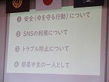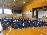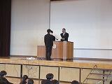 12月23日、全校集会が行われました。集会では、まず、剣道個人、アンサンブルコンテスト、英語検定試験の表彰が行われました。続いて、担当職員より、クリスマスや正月などの行事があっても毎日の学習習慣を大切にし、できない日は工夫して継続すること、またフォーサイトを活用して見通しをもって学習に取り組むことについて話がありました。次に、冬休みの過ごし方について、交通ルールや火気の安全、SNSトラブルや金銭面への注意、保護者不在の家への訪問を控えることなど、自分の命と行動に責任を持ち、学校の生徒として自覚ある生活を送ることについて話がありました。