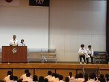 渡邊氏からは、3年間にわたり素晴らしい取り組みを続けてきた生徒の皆さんと関わることができたことへの想いが語られました。また、中川氏からは、「自分のやりたいことをできるだけ早く見つけ、それに向かって努力していく生き方の素晴らしさ」についてのお話がありました。