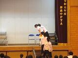 11月5日、東京より「カルティベイト」の皆様をお迎えした、舞踊(ヒップホップダンス)の鑑賞教室が行われました。ダンサーには、世界一になられた方が何人もいらっしゃいました。会場の体育館に入ると、そこはこれまでの体育館とは違う、エキサイティングな雰囲気が漂っていました。そして、活気ある音楽とダンサーたちのパワフルな動きに一瞬で引き込まれました。リズムにぴったりと合った、とても速い動きや、自由自在に身体を動かす筋力。普段は絶対に見ることのできない体の使い方やステップに目が釘付けになりました。ヒューマンビートボックスの日本一のプロもいらっしゃいました。これも素晴らしかったです。生徒もダンサーと一緒に踊り、自分を表現することの楽しさを学んだようでした。今回の鑑賞教室を通して、ヒップホップダンスの奥深さと魅力に触れることができ、とても良い経験となりました。このような機会を与えていただいた皆様に感謝申し上げます。ありがとうございました。