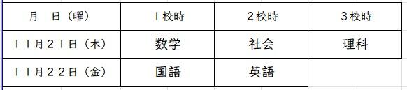 11月21日より定期テストが始まります。苦手なところを最終的に確認し、集中して勉強に取り組んでほしいと思います。