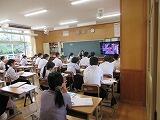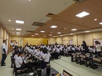 7月5日、夏祭に向けて、都農神社宮司の永友謙二様と、長年、中学校の太鼓台製作や指導に関わってくださっている塩月良一様による講演会が3年生対象に行われました。講演会を通して、3年生のみなさんは、夏祭に関わる由来やこれまでの歩み等について知ることができました。