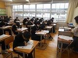 1月31日(水)本日は雨の天気でした。校内では落ち着いた様子で生徒が学習に励んでいました。3年生も入試に向けて友だちと問題を解いたり教え合ったりしていました。