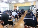 本日の3・4校時に3年生は、入試に向けた面接指導を地域の方々が面接官となり実施いたしました。本年は、面接官を2人一組として計画し、10名の皆様に御協力いただき実施することができました。10名の方は、元教員や行政の管理職、民間の取締役、住職さんなど多種多様の方々にお願いし、それぞれの御経験を踏まえたご指導をいただくことができました。面接官からは、「暗記したことをそのまま言おうとしている」「都農中の良さは自身の思いを入れる」「ハキハキ応えて良かった」「退室の際の指導が必要」など具体的なアドバイスをいただき、実りある2時間となりました。本日いただきましたことを今後、そして本番に生かせるよう指導していきたいと思っています。面接官をお引き受けいただきました皆様に心より感謝申し上げます。