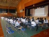 11月21日(火) 本日の午後、「新入生入学者説明会」を行いました。日程説明・諸連絡の後、『校内見学』を行い、体育館に戻って『中学校の概要』、『中学校の学習』、『中学校の生活』などについての説明を行いました。残念ながら、『部活動見学』については、インフルエンザ感染拡大により中止となりました。来年度の新入学予定者数は94人です。