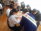 11月13日(月) 本日の2校時、2年生が『コサージュづくり』を行いました。これは、3年生に贈る「卒業記念品」として、毎年取り組んでいるもので、「社会を明るくする運動」の一環として、更生保護女性部会都農支部の皆様のご指導を受けながら制作を行いました。