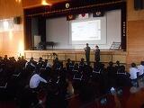 12月22日(金) 『終業式』の前に、「ゆめ・未来講演会」を行いました。今回は、サッカーチーム『ヴェロスクロノス』の選抜選手2名に来ていただき、パネルディスカッション形式で「夢への挑戦」というテーマでお話をしていただきました。講演会の後半では、生徒と一緒に、サッカーボールを使ったデモンストレーションも行っていただきました。