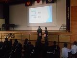 11月19日(日) 「都農町文化祭【舞台発表部門】」が、都農南小学校体育館で行われました。【展示部門】については、先日、ホームページでもお知らせしましたように、4日(土)、5日(日)に、都農町民体育館で実施され、本校からも多数の作品を出展しました。今回は、吹奏楽・ピアノソロ・ドラム・ハーモニカ合奏・レクダンス・日舞・フラダンス・コーラスなどの舞台発表が行われ、本校からは吹奏楽部が出演し、『ANJIN:BLUE EYED SAMURAI』、『怪獣の花唄』を演奏しました。