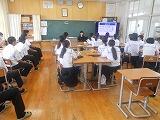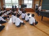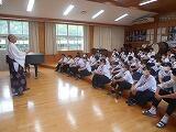 7月5日(水)6校時、3年生の総合的な学習の時間に。都農神社宮司から「都農町の歴史」についてのお話をしていただきました。本町の歴史と伝統、また宮司の自慢話も含めて楽しい1時間でした。講話の後には生徒から拍手がおきました。