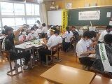 7月7日(金) 3年生は、夏祭りの「太鼓台」に飾り付ける『花作り』を行いました。都農町内の12名のボランティアの方たちと一緒に『花作り』を行い、夏祭りの当日には、4,000本の花を飾り付けた「太鼓台」が町内を巡ることになります。ボランティアのひとりの柏田さんは、「久しぶりに都農中に来て、懐かしかったです。娘と一緒に、また学校に遊びに来ます。」とコメントされていました。