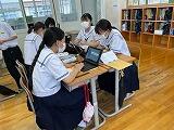6月30日(金) 本日の総合的な学習の時間の様子です。2年生は、来週5日(水)からの「修学旅行」の『班別自主研修』の行程の最終チェックを行っていました。また、3年生は、8月1日(火)の「都農神社大祭」で使用する太鼓台に飾りつける『花づくり』を行っていました。