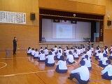 7月10日(月) 参観授業の後、体育館で「学校保健委員会」を行いました。九州保健福祉大学より、神田潤一先生を講師としてお招きし、『成長期に多いスポーツ外傷とスポーツ障害の原因と予防について ~心身ともに健康な生活を送るために~ 』というテーマでお話をしていただきました。大変暑い中での「学校保健委員会」となりましたが、貴重なお話をしていただいた神田先生、ご参加いただいた保護者の皆様、ありがとうございました。