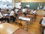 7月10日(月) 今日は、2回目の学校参観日でした。参観授業は、1年1,6組(英語)、1年2,5組(国語)、1年3組(数学)、2年1,6組(英語)、2年2組(技術)、2年3,5組(美術)、3年1,2,6組(総合)でした。写真は、1年生から3年生まで、学級ごとの参観授業の様子です。暑い中、ご参観ありがとうございました。
