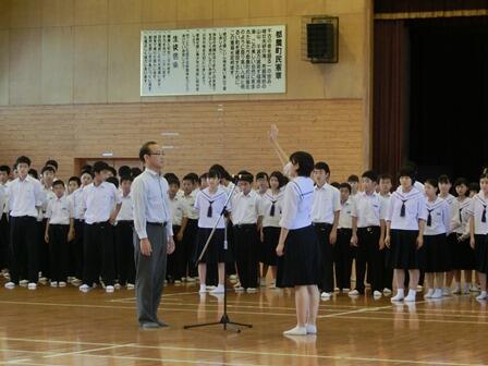 6月1日(木)、選手激励式が行われました。各部活動ごとに抱負を述べて、中体連に向けての意気込みを発表しました。それぞれ精一杯の力を出し切って悔いのない結果を残して欲しいです。