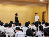 7月5日、夏祭に向けて、都農神社宮司の永友謙二様と、長年、中学校の太鼓台製作や指導に関わってくださっている塩月良一様による講演会が3年生対象に行われました。講演会を通して、3年生のみなさんは、夏祭に関わる由来やこれまでの歩み等について知ることができました。
