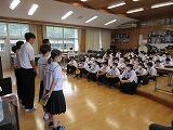 7月1日、宮崎県中学校総合体育大会・宮崎県吹奏楽コンクール激励会が行われました。県大会に出場する競技は、剣道、弓道、柔道、バドミントン、空手、陸上です。決意表明や選手宣誓を通して、代表としての自覚を持たせると共に、大会に向けての士気を高めることができました。