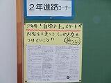 更新に少し間が空きました。すみませんでした。さて、本日のT・Tの時間に単元テスト2回分の目標設定を行いました。単元テストは、昨年度からの本校独自の取組です。授業で学習した内容を短いスパンで振り返り学びの定着を図っていくことが大きなねらいです。学校と家庭が連携しながら「やわかる・できる喜び」や「やればできる」ことを実感させながら学力の向上につなげていきたいと考えています。また、家庭での自学ノートの参考例なども掲示しながら生徒自身の意欲につなげていく取組も行っています。ご家庭でも勉強する習慣を身に付けるようご協力をよろしくお願いいたします。