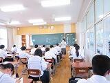 本日は、中部教育事務所と都農町教育委員会が本校の学力向上に向けての取組をさらに支援していただく、重点支援校訪問の第1回目でした。午前中に、3つの班の代表の先生(黒田芳伸先生、宮越昌輝先生、永野輝仁先生)による研究授業が行われました。また、午後からは、全体会において、中部教育事務所の川島主幹より講話をいただき、その後3つの班に分かれてそれぞれの授業研と今後の実践内容について協議しました。これから1年間、中部教育事務所と町教育委員会の指導主事の先生方のお力もいただきながら本校の生徒の学力向上と授業改善に向けての実践研究に取り組んで参ります。