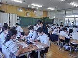 本日の午後は、全学年「総合的な学習の時間」でした。特に2年生については、(株)イツノマ様との「つの未来学」の3回目でした。本来ならば、都農ページについてと課題当事者の話を聞く予定でしたが、一人一台のタブレットが思うように起動しなかったりしました。大変申し訳なかったです。次回までには原因を確認し、ネット環境を整えておきたいと思っています。しかしながら、生徒の皆さんは、意欲的に話し合いをしながら考えた意見を述べていました。このような活動に取り組むことで、人前でも積極的に話せる、知らない人たちの中でもコミュニケーションをとっていける、創造的・想像的な発想ができるなど、新しい力を身に付けていってほしいと思っています。