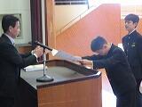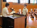 本日、令和2年度の修了の日を無事迎えました。午前中に修了式を終えました。式の前に表彰(宮日若い目投稿、英語検定)を行いました。そして、式に入りまず1年間を振り返って、1年:永友葵さん、2年:川野杏寿美さん、生徒会:黒木心愛さんが発表しました。授業態度を改善していきたい、委員会活動に責任をもって取り組めた、生徒会行事を協力して企画運営できたなど、しっかり述べてくれました。