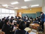 週末から晴天に恵まれています。さて、本校に教育実習生として来校している坂本先生の実習期間が今週で終わりを迎えます。本日は4校時に、2年1組において、道徳の研究授業が行われました。笑顔を絶やさず、落ち着いて授業を進められました。生徒の皆さんは、発問に対して意欲的に発表したり、班活動では積極的に意見交換をしていました。今週の金曜日まで充実した日々を過ごしてもらいたいと思っています。