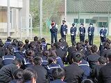 全校生徒が元気に登校しています。さて、本日の2・3校時に高鍋警察署、都農交番の警察官及び交通安全協会の指導員の皆様7名を講師に迎え、交通安全集会を開催しました。天候にも恵まれ、当初の計画通り「講話」「自転車点検」「実技訓練」の3つを全学年が順番に行っていきました。1年生は特に本日初めて自転車で登校して来ましたが、自転車の方が大きいのでは?と思う生徒や荷台のバッグがうまく結べていない生徒もおりました。また、地域の方から早速、「右側を走行してくる生徒」もいたとのお電話もいただいたところです。学校でも登下校について十分指導をしていきますが、御家庭や地域でも気づかれたことはその都度、その場で指導をしていただきますとありがたいです。大きな事故を未然に防ぎたいものです。どうぞよろしくお願いいたします。