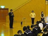 昨日で県立一般入試も無事終わり、本日の3校時から送別行事を行いました。残念ながら雨は上がったもののグランドコンディションが不良で、開閉会式は放送、レクリエーションは学年ごとに体育館で行いました。開閉会式からレクリエーションの進行まで、生徒会役員がすべて行ってくれました。レクリエーションは、「大繩」「サッカーボーリング」「ジェスチャーゲーム」など全8種目を各班ごとに競い合い、総合点数の高かった班が優勝というものでした。ゲームの種目もよく考えられており感心しました。3年2組の8班が優勝でした。