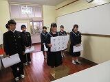 表彰は、町教育委員会より全校児童生徒の表彰があり、本校からは黒木一臣さん(3年)が受賞しました。一臣さんは、2ヵ年の生徒会役員としての活動や校内外のボランティア活動、神楽の舞手などの様々な活動が認められての表彰でした。また、単元テストの表彰もあり、各学年の代表として、1年三輪ひまりさん、2年黒木龍真さん、3年福嶋日菜子さんに表彰状を授与しました。