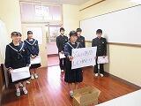 本日、町の更生保護女性会の皆様より卒業生に対して、手づくりのコサージュ(胸花)と鉛筆立てをいただきました。更生保護女性会の皆様は、6月ぐらいから町内の小・中学校の卒業生に送るための準備を始められたそうです。コロナウイルス感染症で製作できるか、また、製作しても届けることができるのか(受け取ってもらえるのか)など、不安を感じながら取組んでいただいたとのことでした。本当にありがたいことです。代表がお礼を言うだけでは、失礼な気がしておりますが、生徒一人ひとりが、コサージュを胸にこれまでのすべての方への感謝とこれからの成長を見せてくれることで、お礼に代えさせていただきたいと思います。本当にありがとうございました。