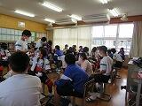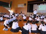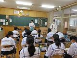 1年生の総合的な学習の時間は、「福祉体験学習」でした。本日を含め3回にわたって、「聴覚障がい、視覚障がい、高齢者」について、体験を交えながら学習していきます。この時間をとおして、さらに障がい者、高齢者の方々への理解を深めるとともに、「共生社会」に向けて自分たちがどう考え、行動していけばよいのかを考えていってくれればと思っています。町社会福祉協議会の皆様、どうぞよろしくお願いいたします。